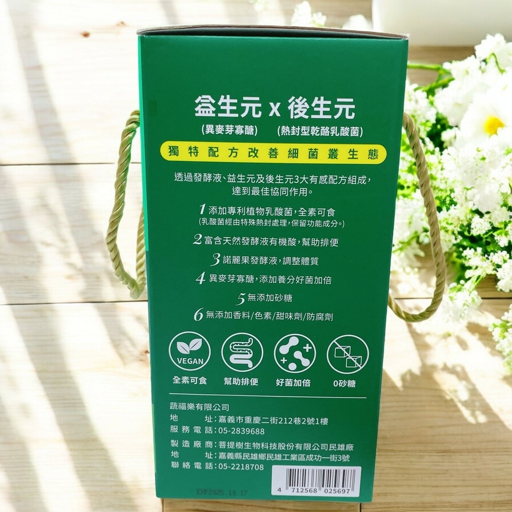 加上益生元(異麥芽寡醣)和日本專利後生元(熱封型乾酪乳酸菌)